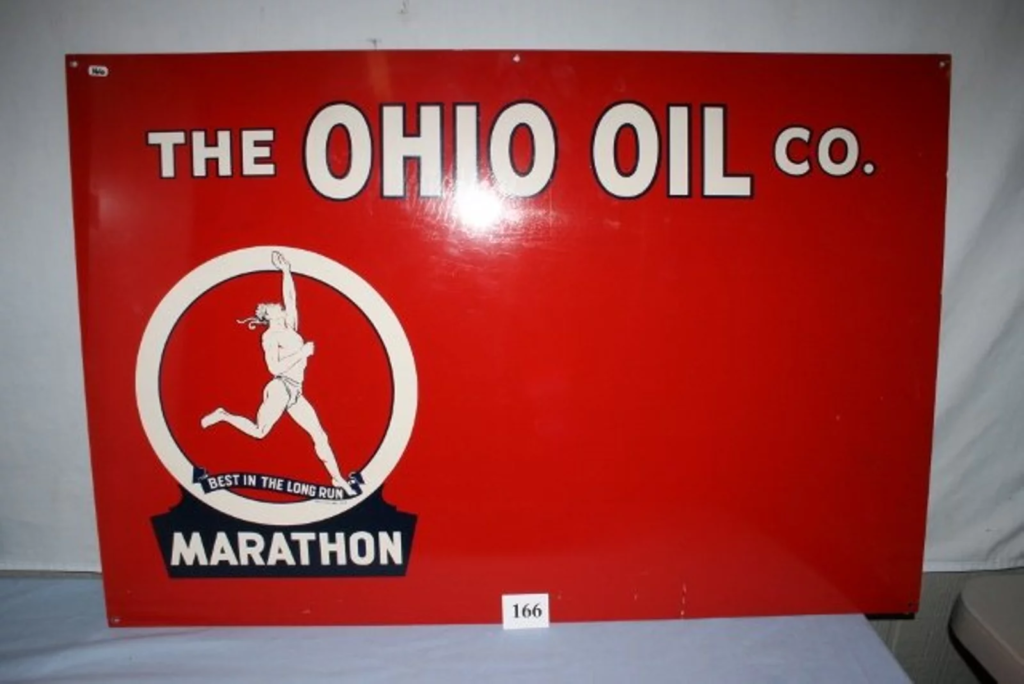 The Ohio Oil Company would later buy Transcontinental Oil, including the Marathon brand, and its distinctive Greek runner logo.