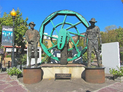 In downtown El Dorado, Arkansas, this memorial to the boomtown years is part of the Oil Heritage Park. The statues commemorate the friendship of oil magnates Charles Murphy and Chesley Pruet.