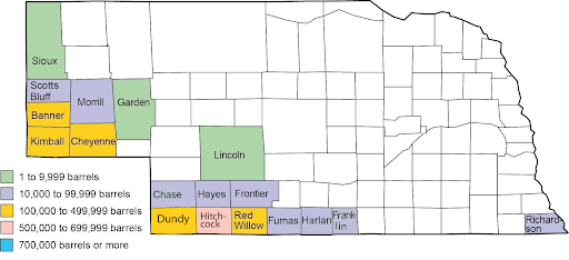 Today, most of Nebraska’s oil production in more centralized, with nearly all oil production taking place in the panhandle area of the state.